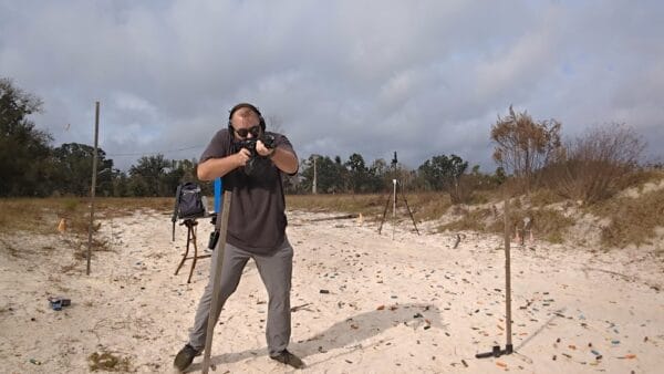 I additionally did slightly offhand sluggish fireplace into the identical ten-inch goal, 5 rounds at a time, aiming for lower than one second per spherical after the primary spherical was fired. I had no issues hitting the goal with each shot fired. It wasn’t a braggable group and was roughly the scale of my hand.