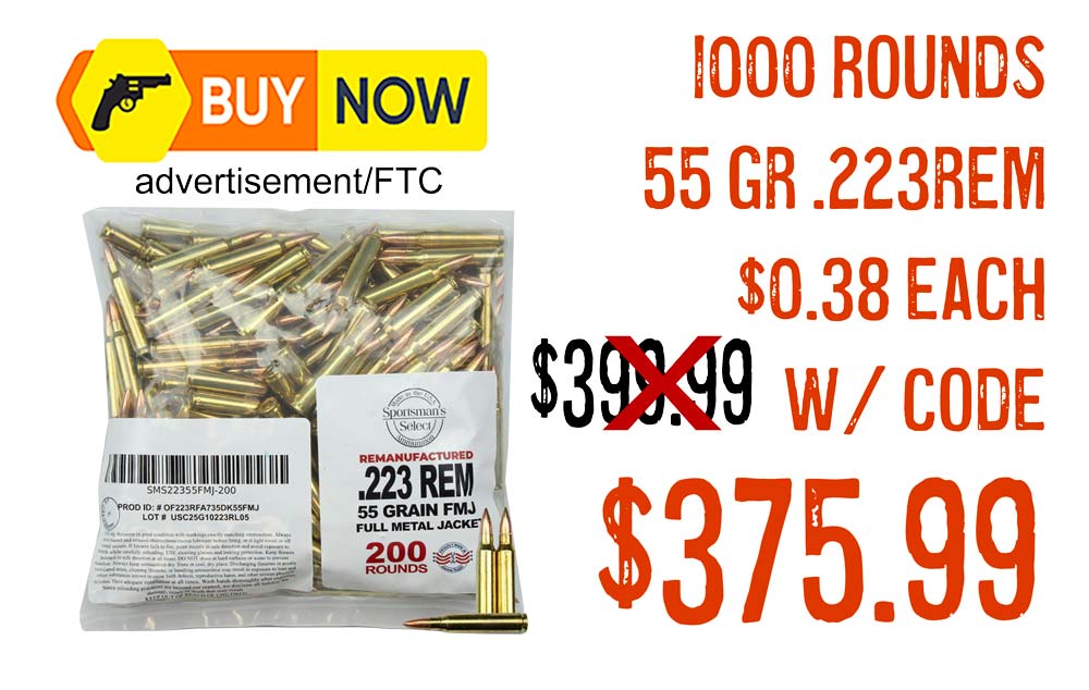 Restricted Time Deal!Ammunition Depot has a limited-time deal, you’ll be able to choose up 200 rounds of Sportsman’s Choose Reman .223 Remington for round $76 after code 6P2026 (about $0.38/rd)! That’s as much as 27% off.
